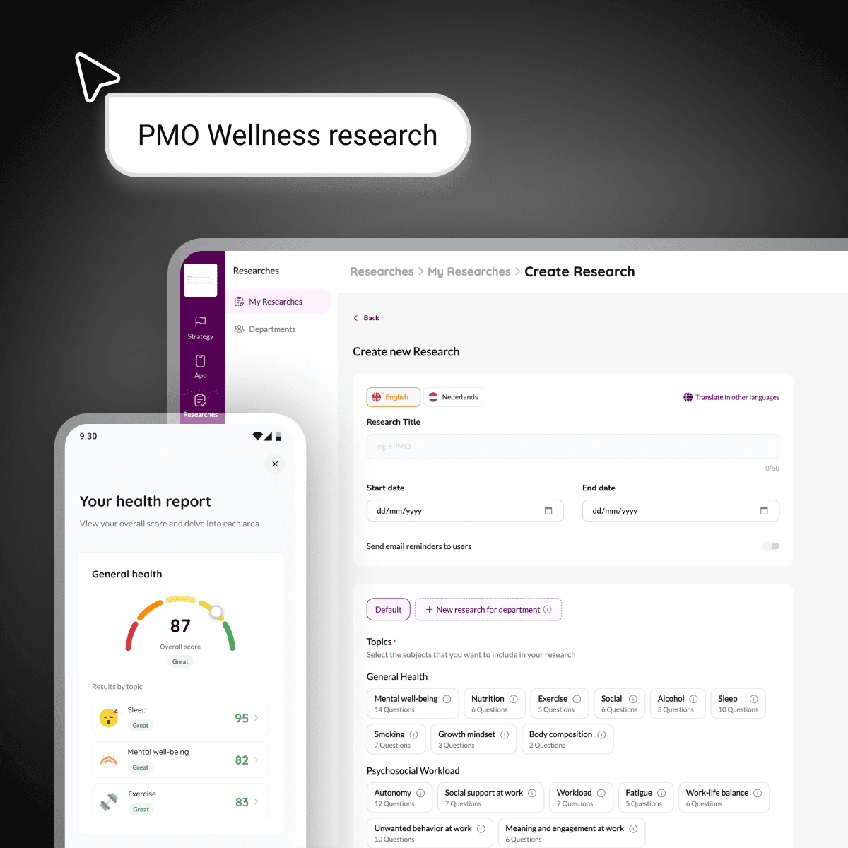 I designed a periodic wellness research tool across web and mobile; giving HR managers department-level insights while keeping individual employee data private and useful.